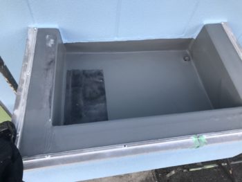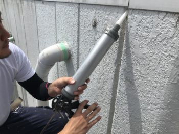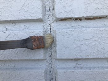 コーキング作業を行います。打ち込み前にプライマーを塗装します。