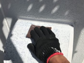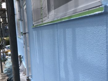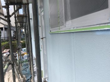 外壁の中塗りは3回塗りがわかるように上塗りの色より薄くなっています。