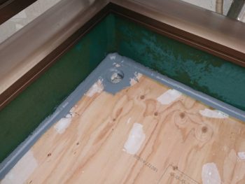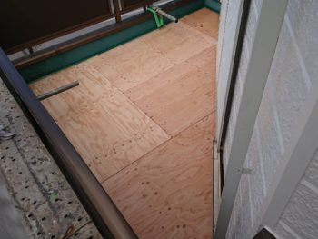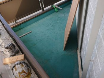 防水工事を行います。ベランダのドレンまわりから雨漏れしていたため、下地が腐っていました。