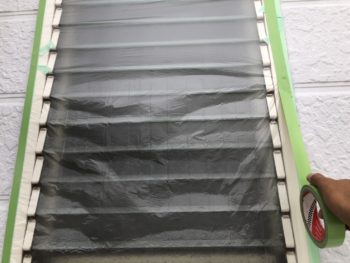 サッシやデッキなど塗料をつけない箇所はビニールや布で保護していきます。