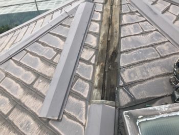 屋根材の先端に水が溜まっていました。
