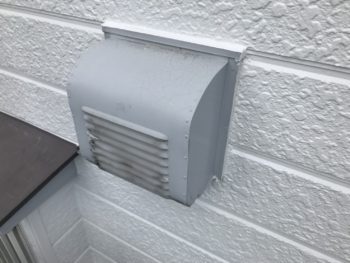 屋根・壁がきれいになった後は付帯部分の汚れが目立ってしまいます。換気フードもケレン作業後、塗装していきます。