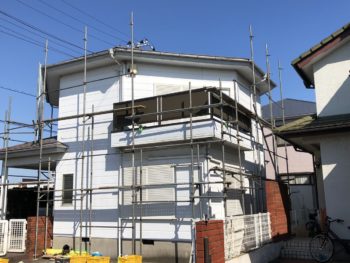続く洗浄作業では足場を利用して、お家全体を洗浄していきます。