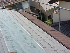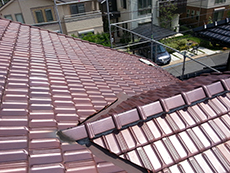 | 施工内容 | 【陶器瓦から金属屋根へ葺き替え】 ①雨漏り工事 ②屋根葺き替え ③雨樋交換 ④防水工事 |