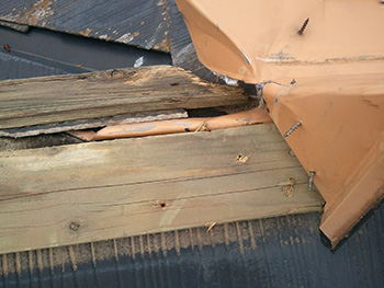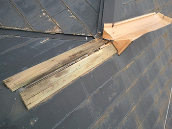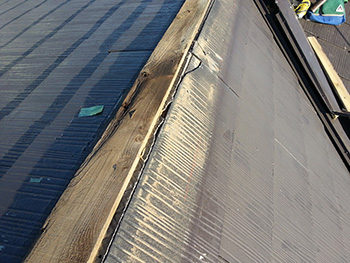 板金が剥がれてしまっています。どうやら下地の木材の劣化によるようです。