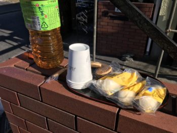養生作業です。塗料がつかないように窓や下回りをビニールで覆っていきます。