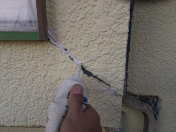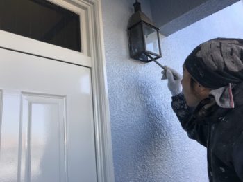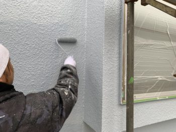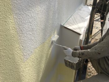 外壁は3回塗っていきます。1回目の下塗り後は、塗装後外壁が白くなります。