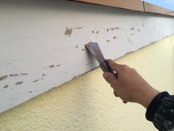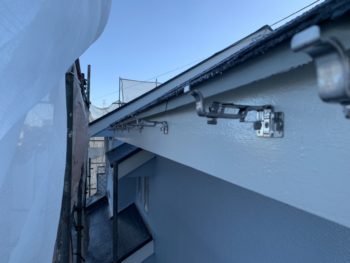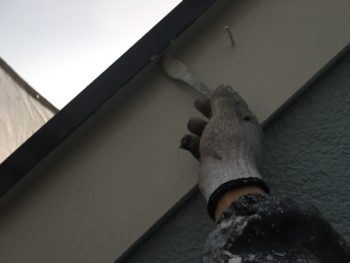 破風板の塗装です。ローラーで塗りにくい箇所は刷毛で塗装します。