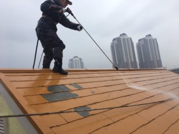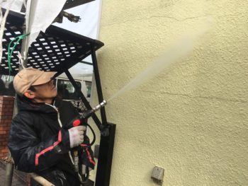 今回の外壁では汚れが付きやすいのでしっかりと洗っていきます。